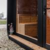 - Priešpirtyje – medinės durys su grūdintu stiklu, pirtyje – grūdinto stiklo durys;