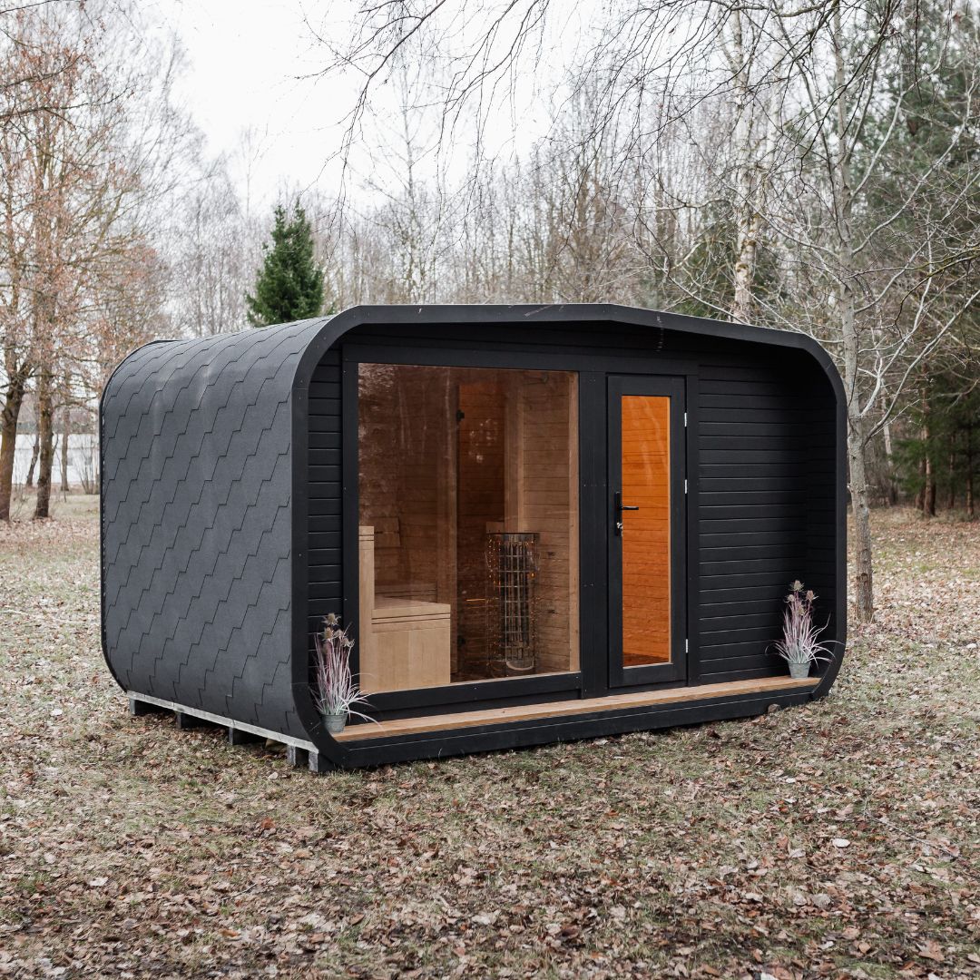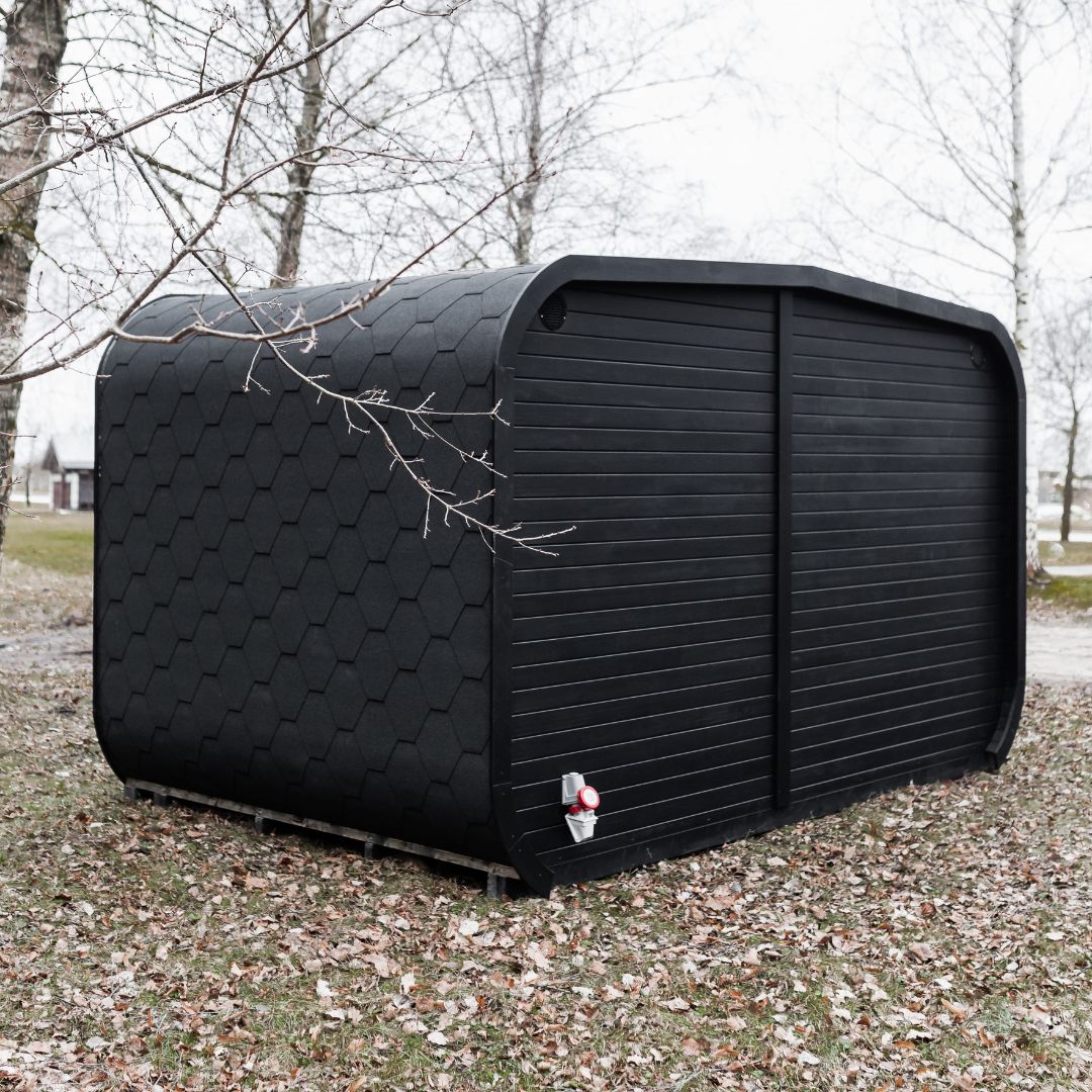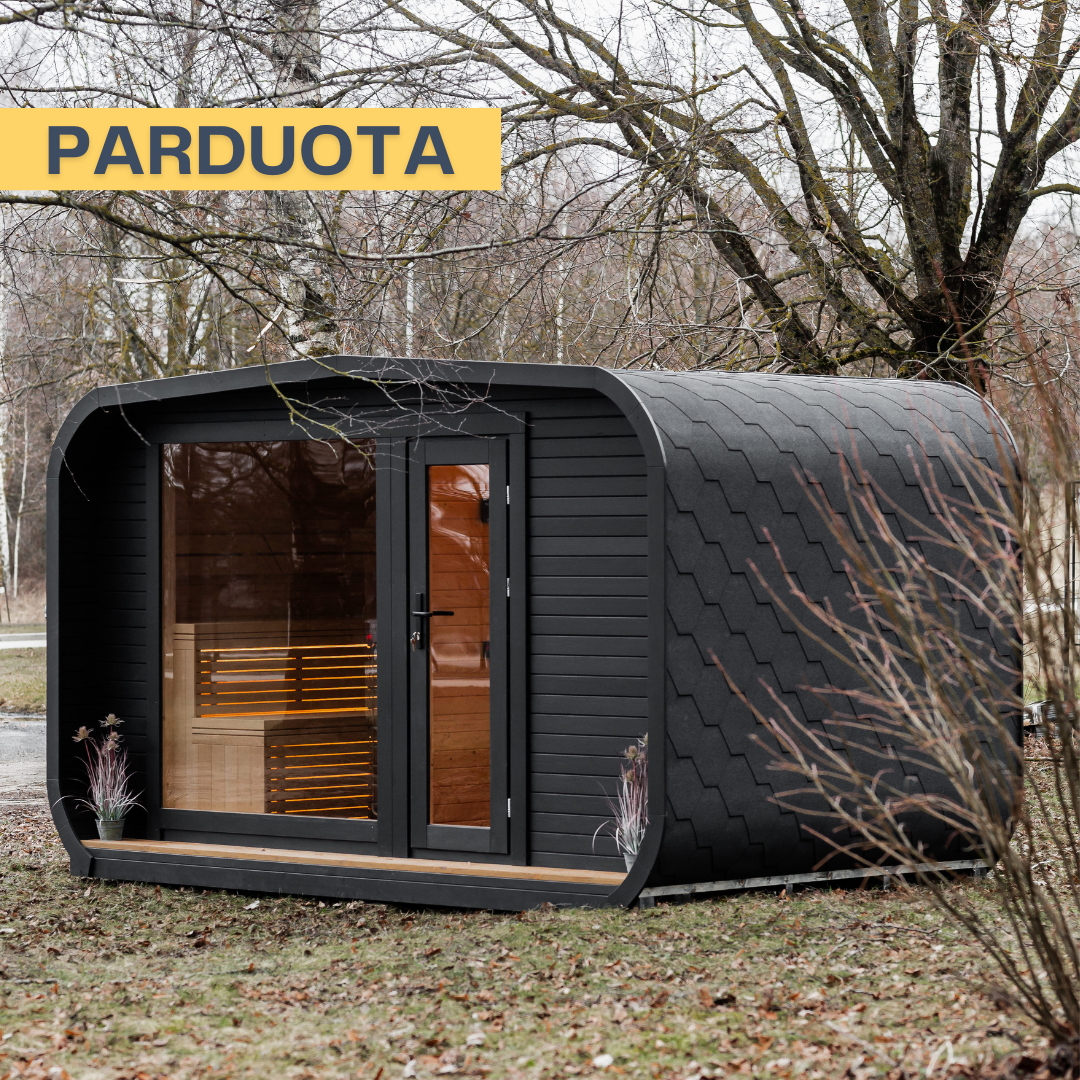 - Pirtis pagaminta iš eglės medienos, nudažyta juoda spalva;
