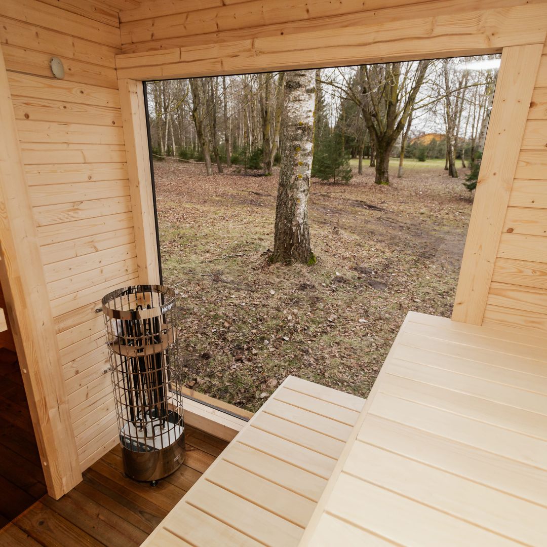 - Elektros įrengimas ir šviesa – LED apšvietimas po pirties suolais, priešpirtyje ir lauke;