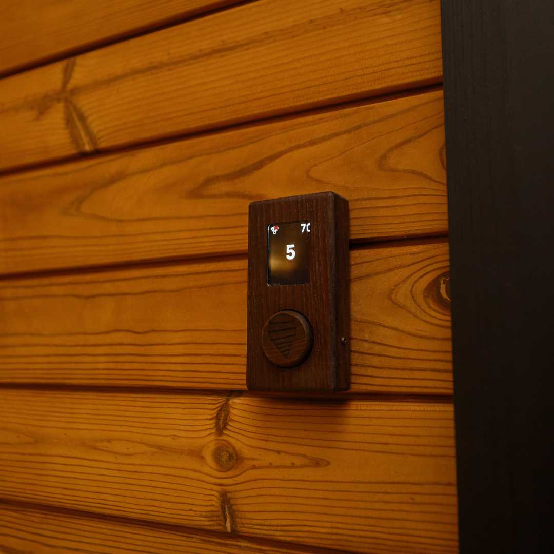 - LED apšvietimas pirties suolų nugaros atramose ir pirties išorėje;
