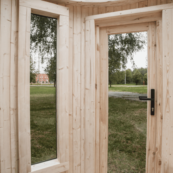 • Pirtis pagaminta iš eglės medienos;